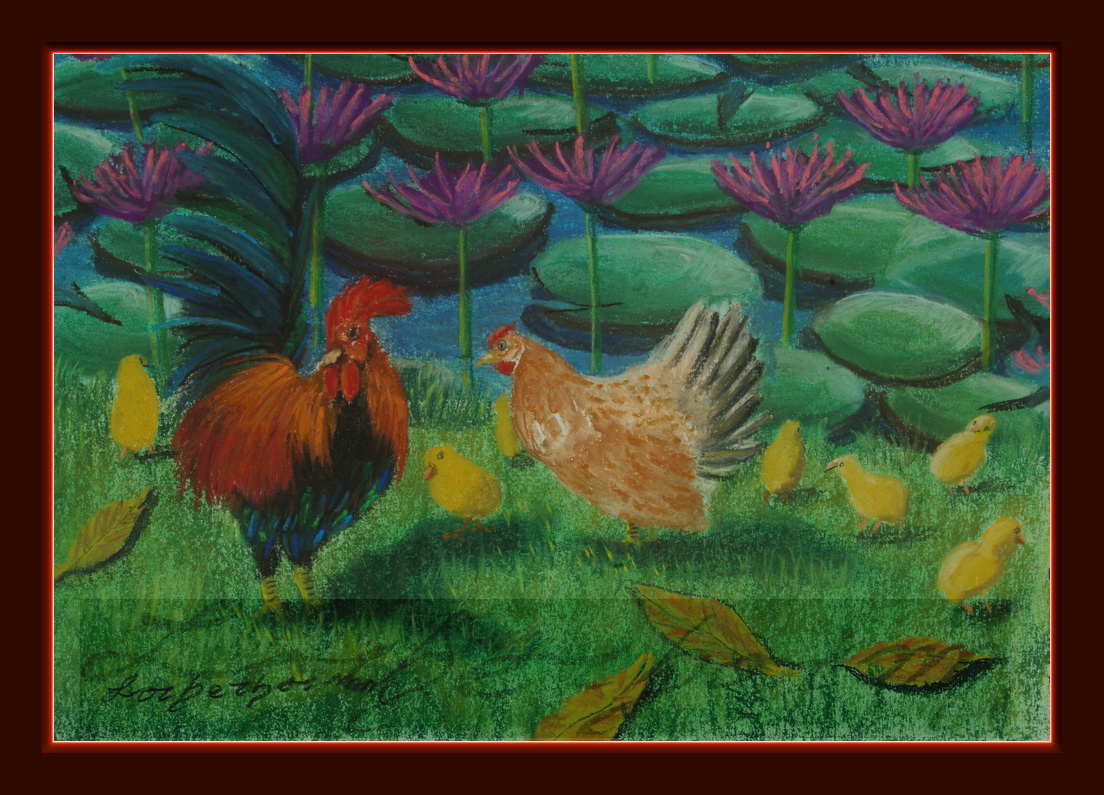 The cock and chickens are from Ayothaya, Thailand.