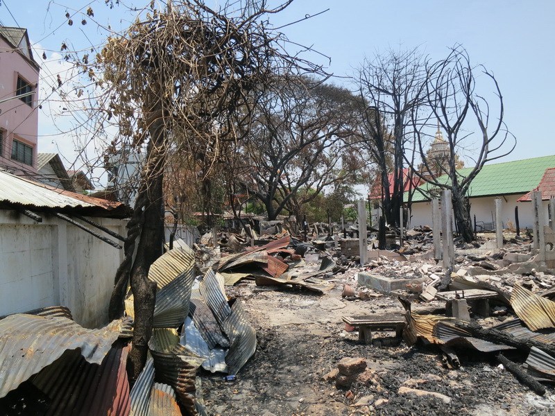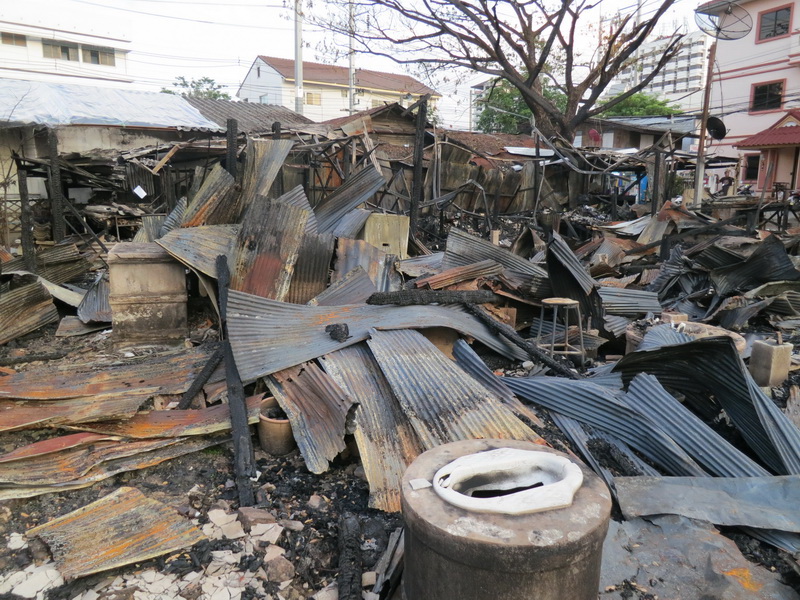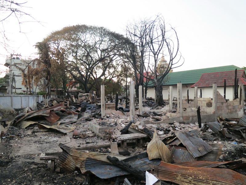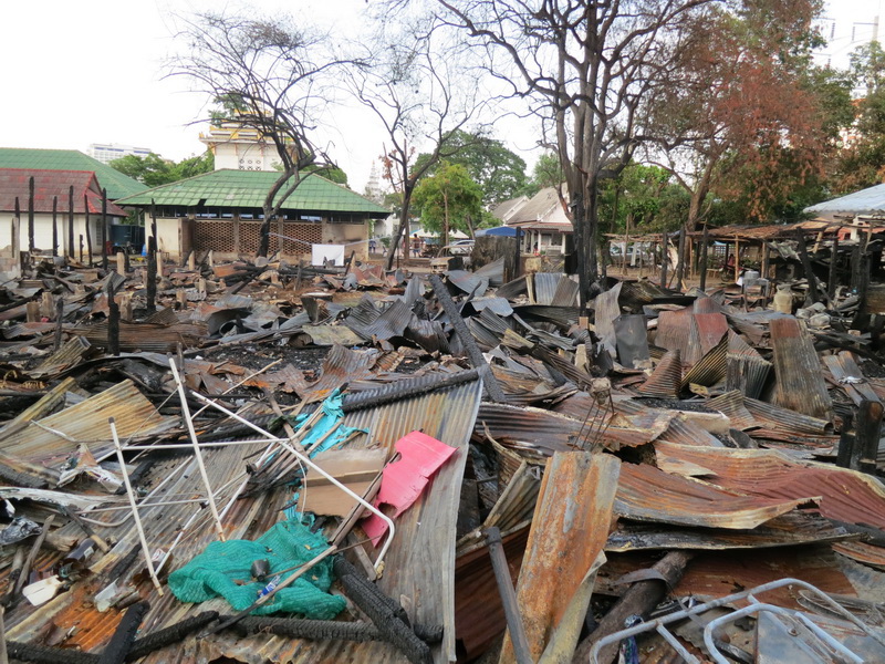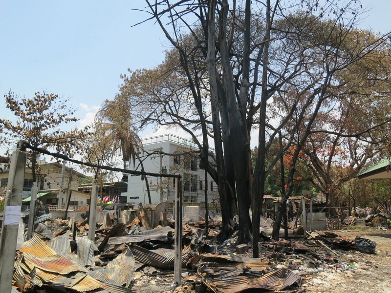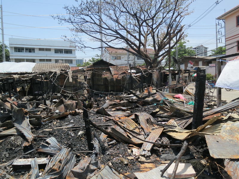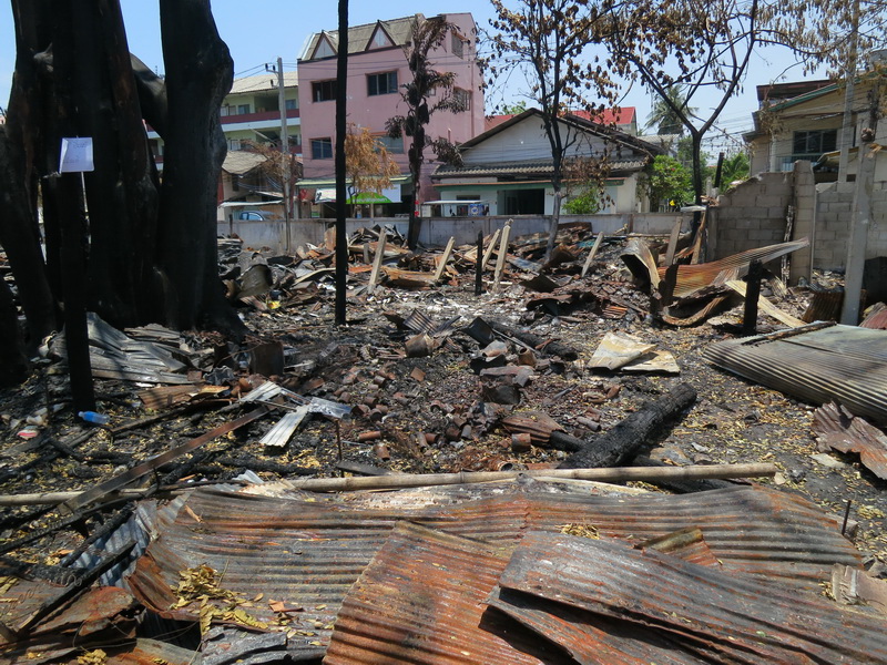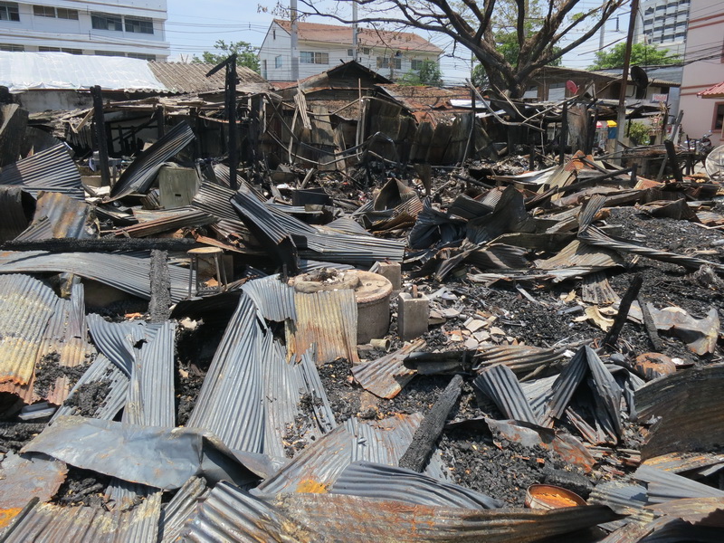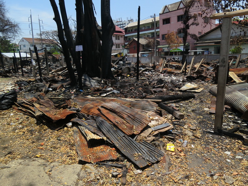 שריפה שפרצה בראשית החודש כילתה כליל שכונת משכנות עוני של כמה עשרות צריפוני עץ ופח בציאנג קלאן בעיר ציאנג מאי