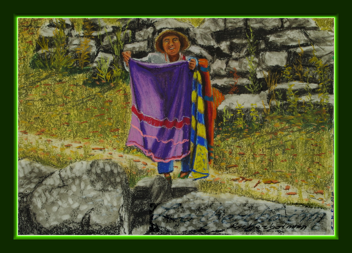 The second drawing is of a young woman selling scarfs at Angkor Vat, Cambodia.